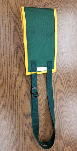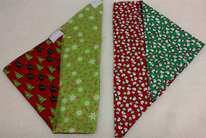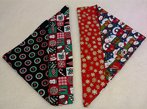Reversible with Velcro closures. Shown with both patterns per scarf.